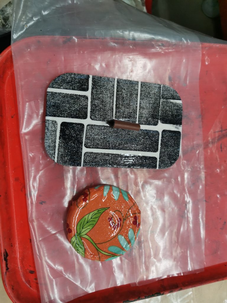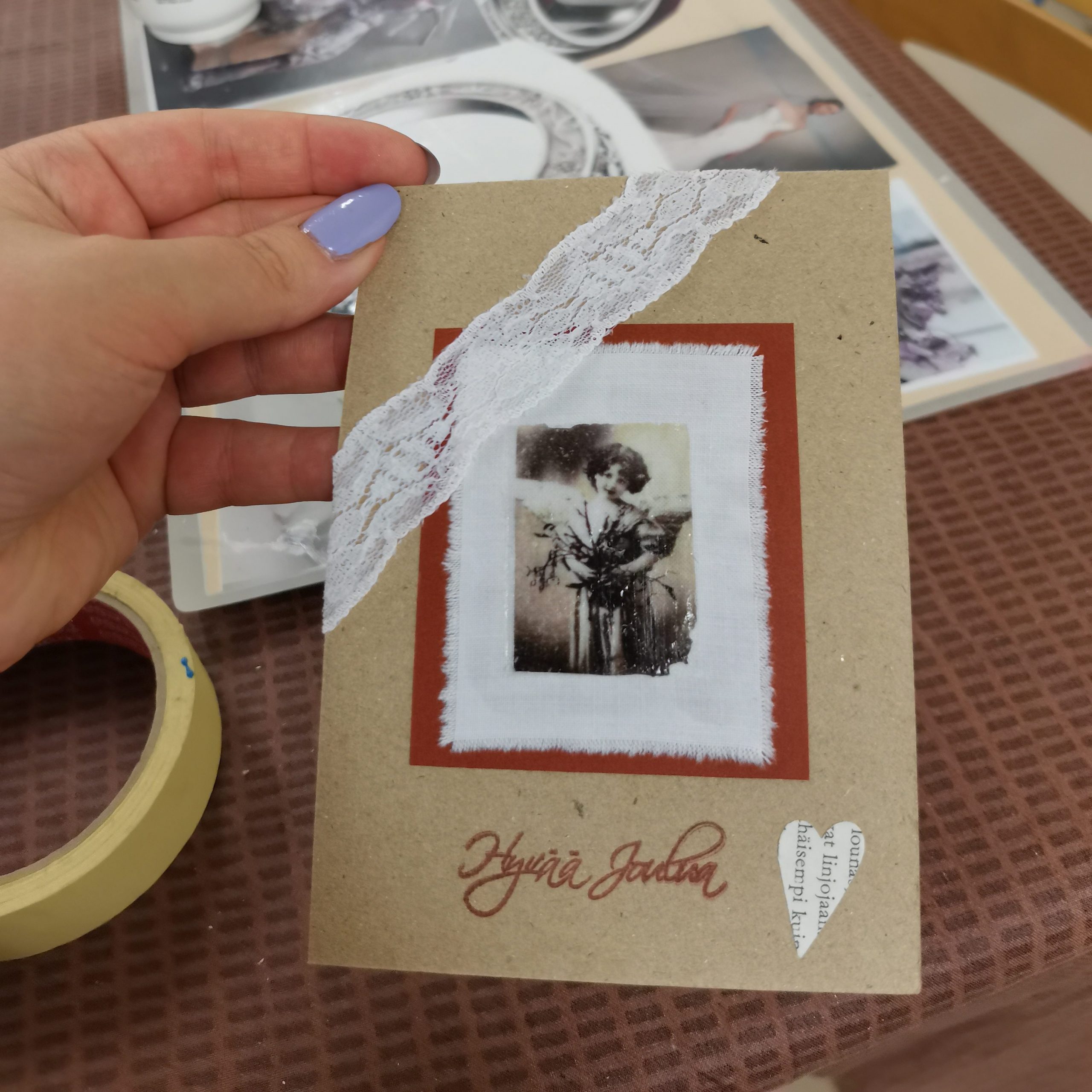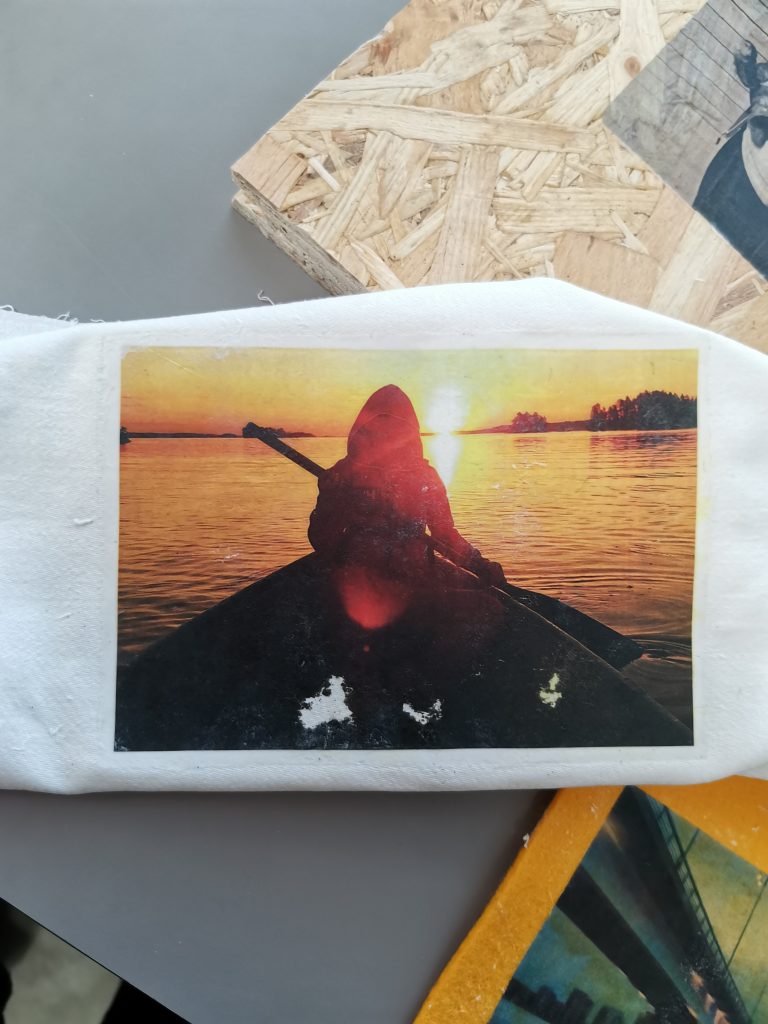 Pajat osaltani alkoivat kuvansiirrolla, kovettamisella ja laminoinnilla. Näistä olin kaikkia kokeillut jo aikaisemmin hieman, mutta oli mukavaa virkistää omaa muistiaan. Hullaannuin varsinkin kuvansiirtoon uudestaan ja kokeilinkin sitä uusille materiaaleille.
