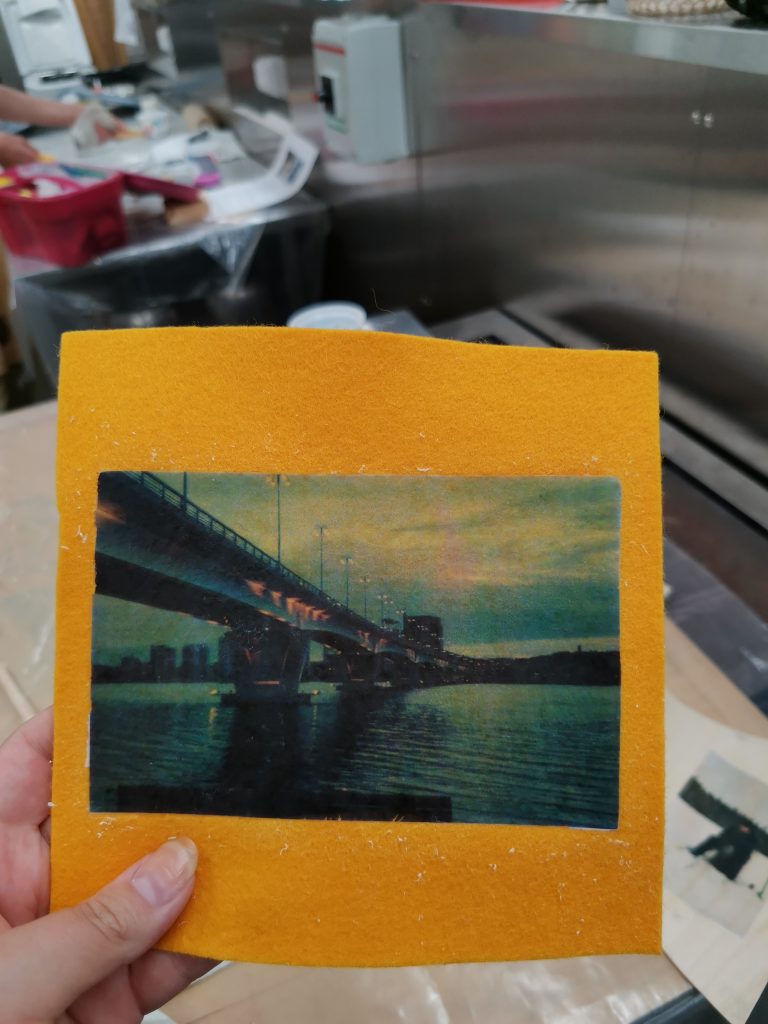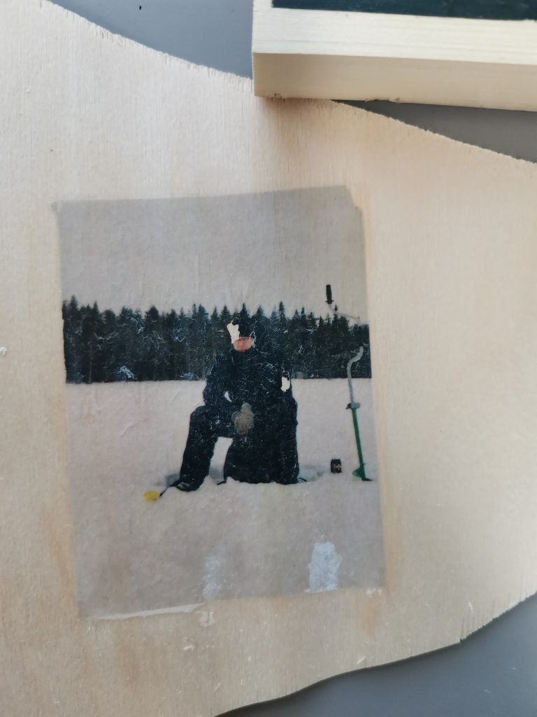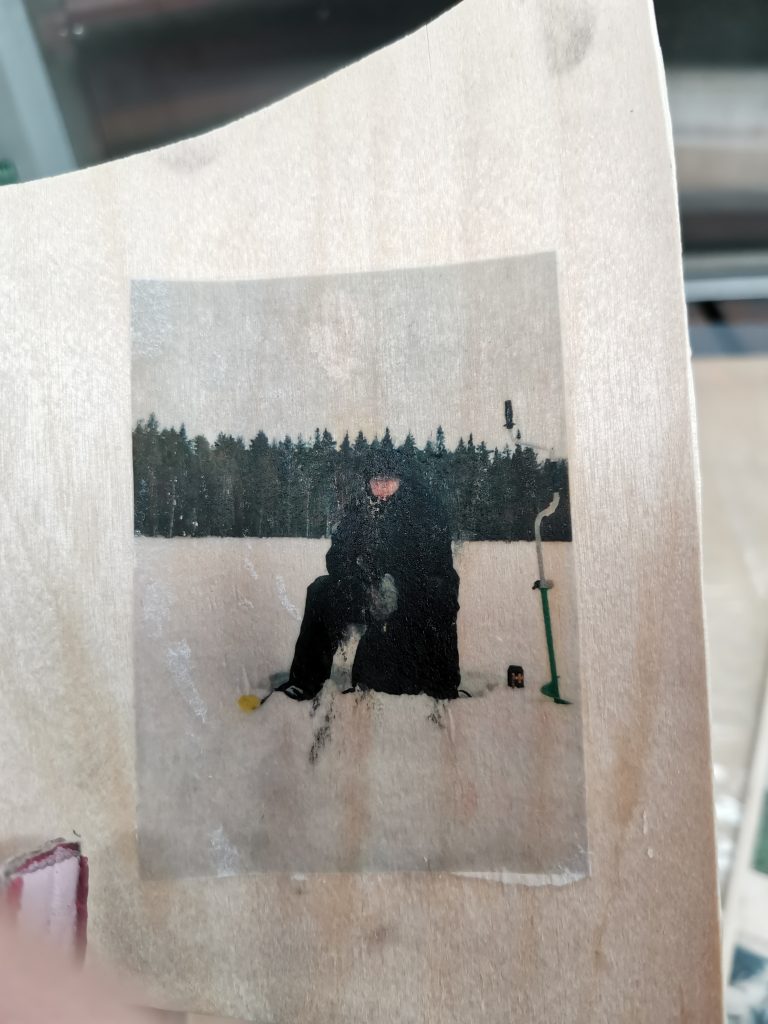 Kuva laitettiin nurinpäin siirrettävälle materiaalille, pyyhittiin mahdolliset ilmakuplat pois ja jätettiin kuivumaan.