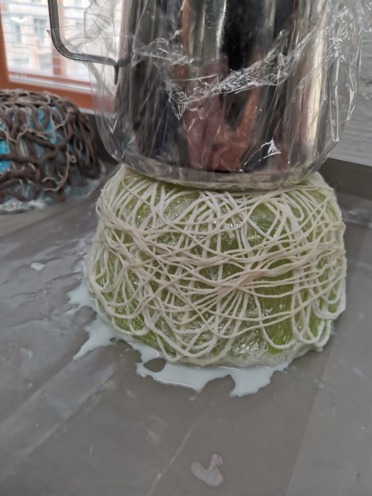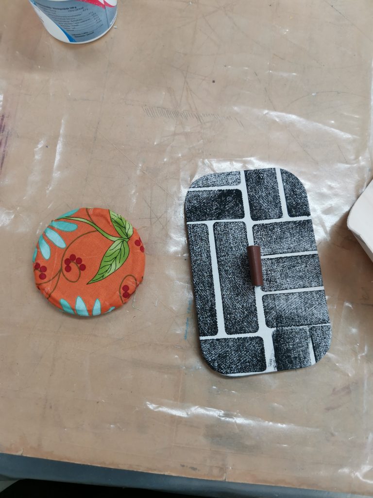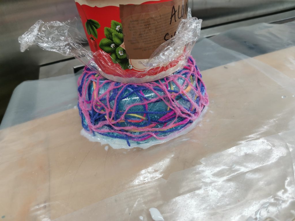 Laminoin myös lasipurkin metallikannen, joka oli haastavaa, sillä kangas ei meinannut jähmettyä paikalleen ollenkaan.