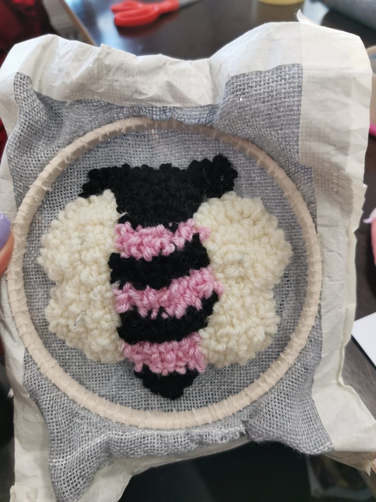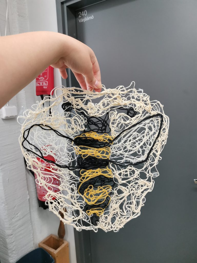 Ensimmäiseksi tuftauksessa päätin tehdä pienen ampiaisen.