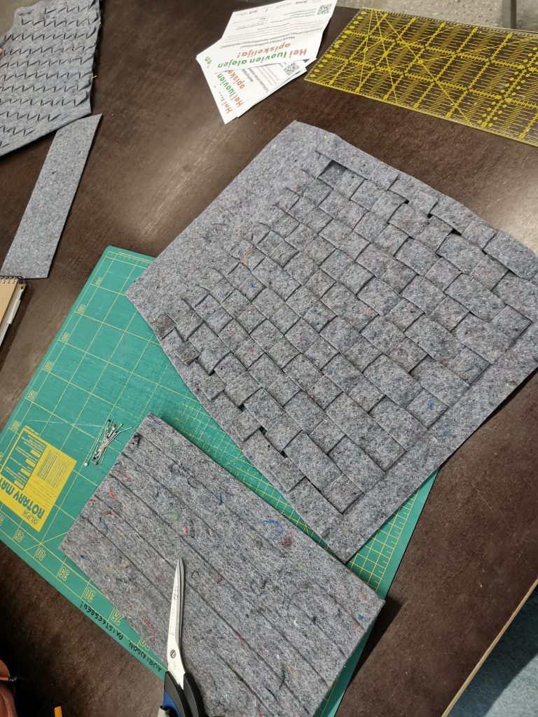 Punonnan aloitimme tekemällä yksinkertaiset istuinalustat greencraftistä.