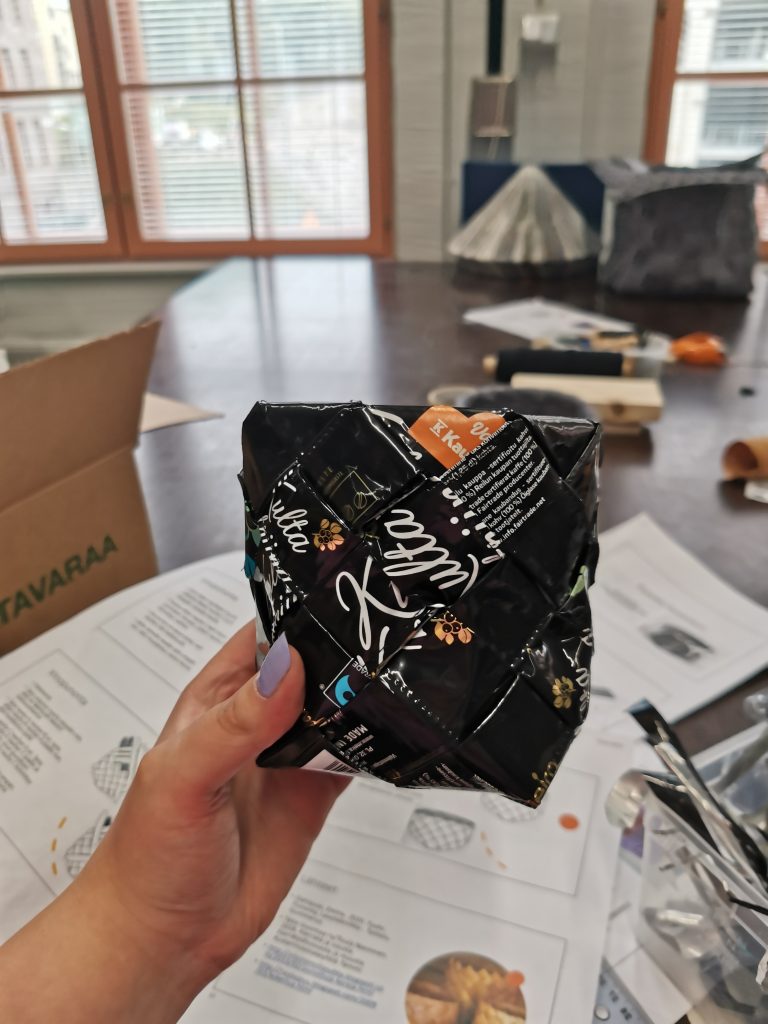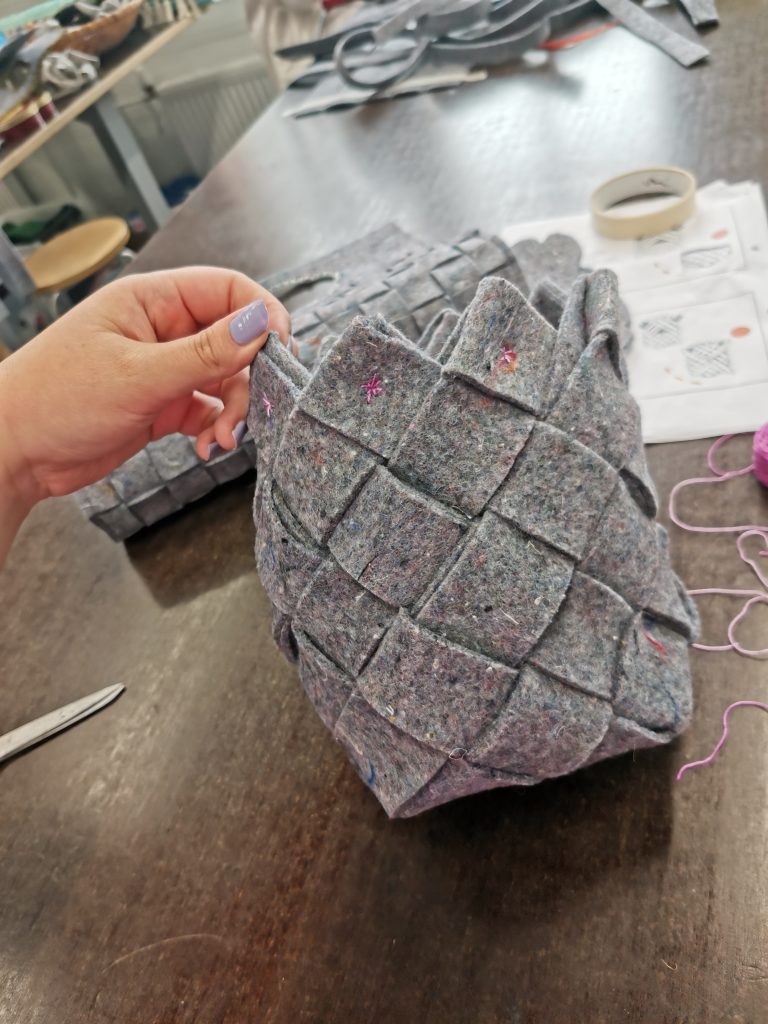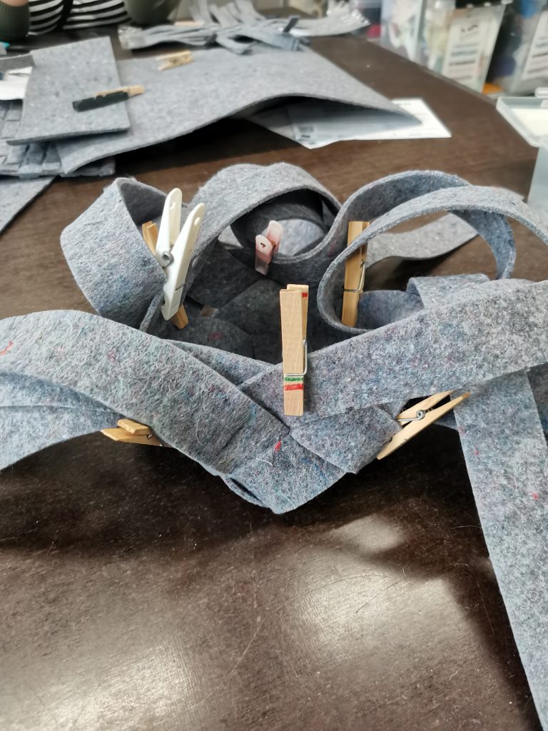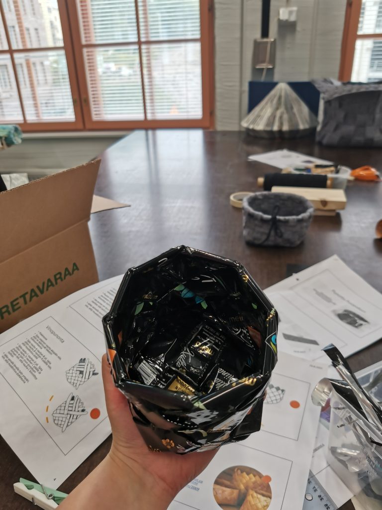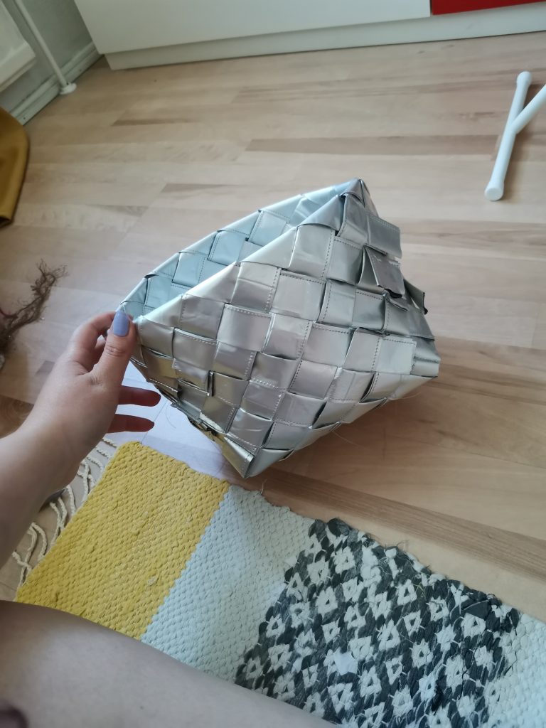 Seuraavaksi ideoin tekeväni pyöreän laukun tekniikalla.
