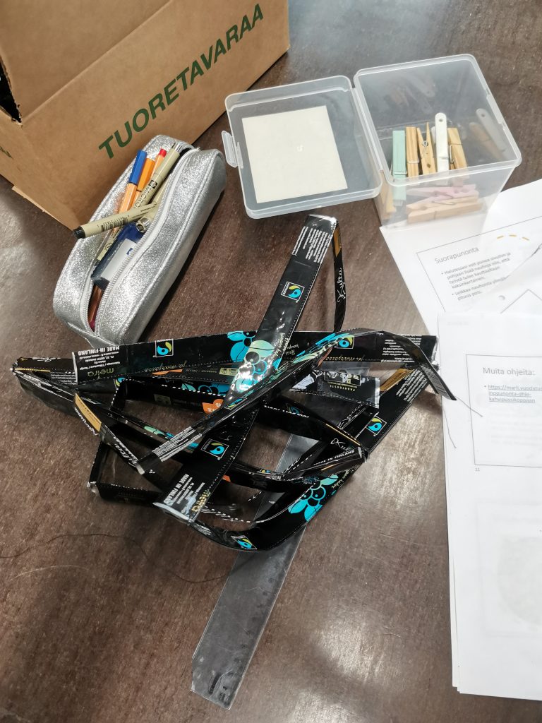 Koulussa meillä oli Valon Kaupungin yhteydessä Heijastava asuste-työpaja ja tässä muutama esimerkki tehdyistä tuotteista.