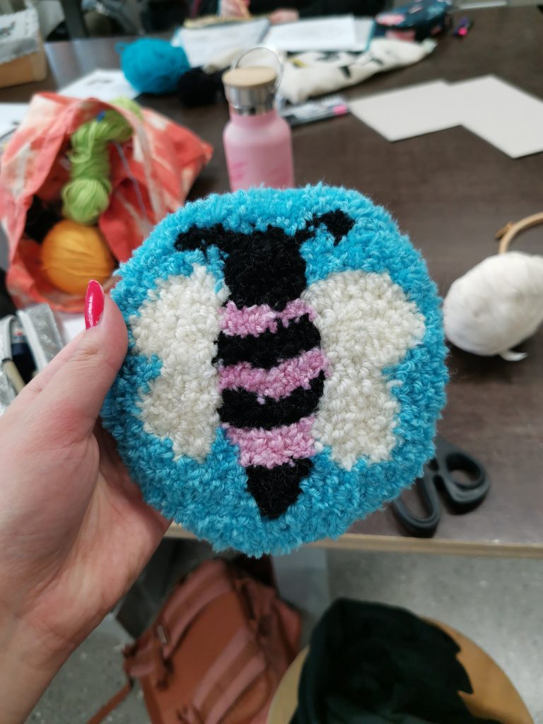 Olen ollut alku keväästä sijaistamassa vanhassa työssäoppimispaikassani. Oli ihanaa päästä kokeilemaan omia kädentaitojaan ihan konkreettisesti niin että olin itse vastuussa kaikesta tekemisestä. Aloitettiin kädentaitojen tunnit tuftauksella, josta jatkettiin makramee käsikoruihin ja amppeleihin.