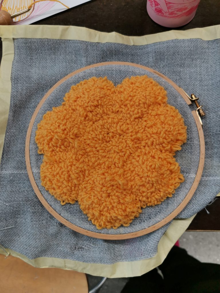 Tuftausta olin kokeillut kerran aikaisemmin neulalla ja koneella, mutta tämäkin tekniikka oli jo hävinnyt muistista. Oli kiva päästä kokeilemaan tekniikkaa uudestaan.