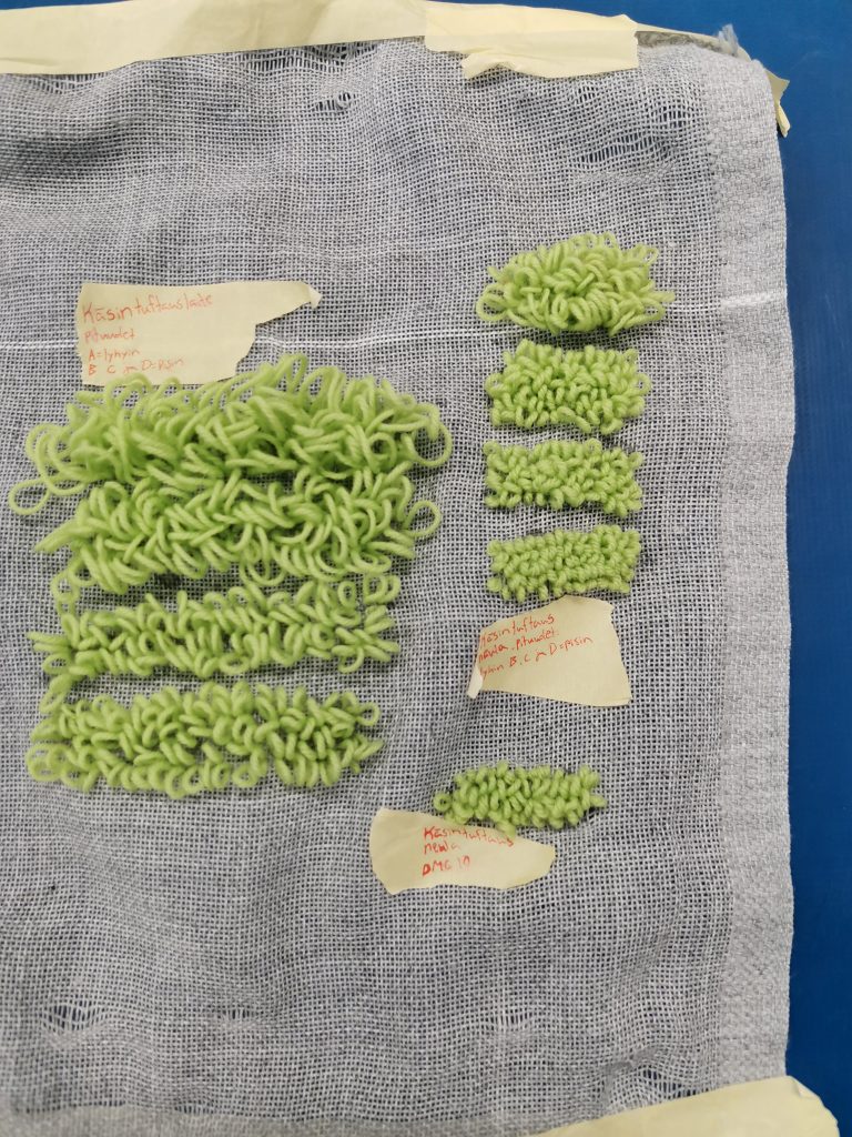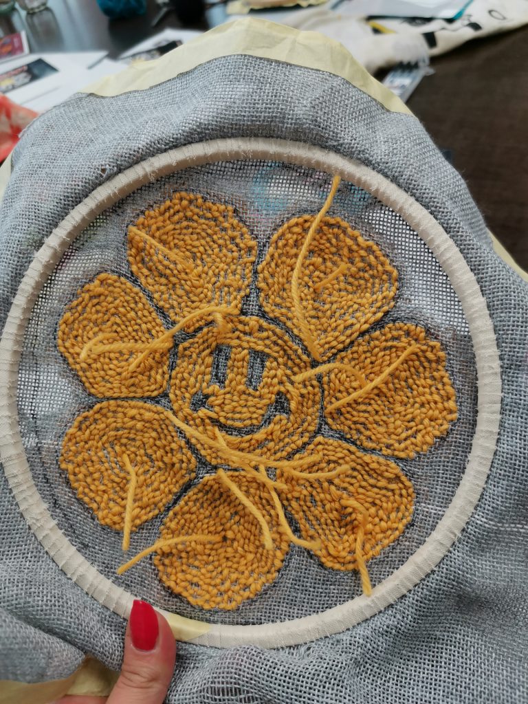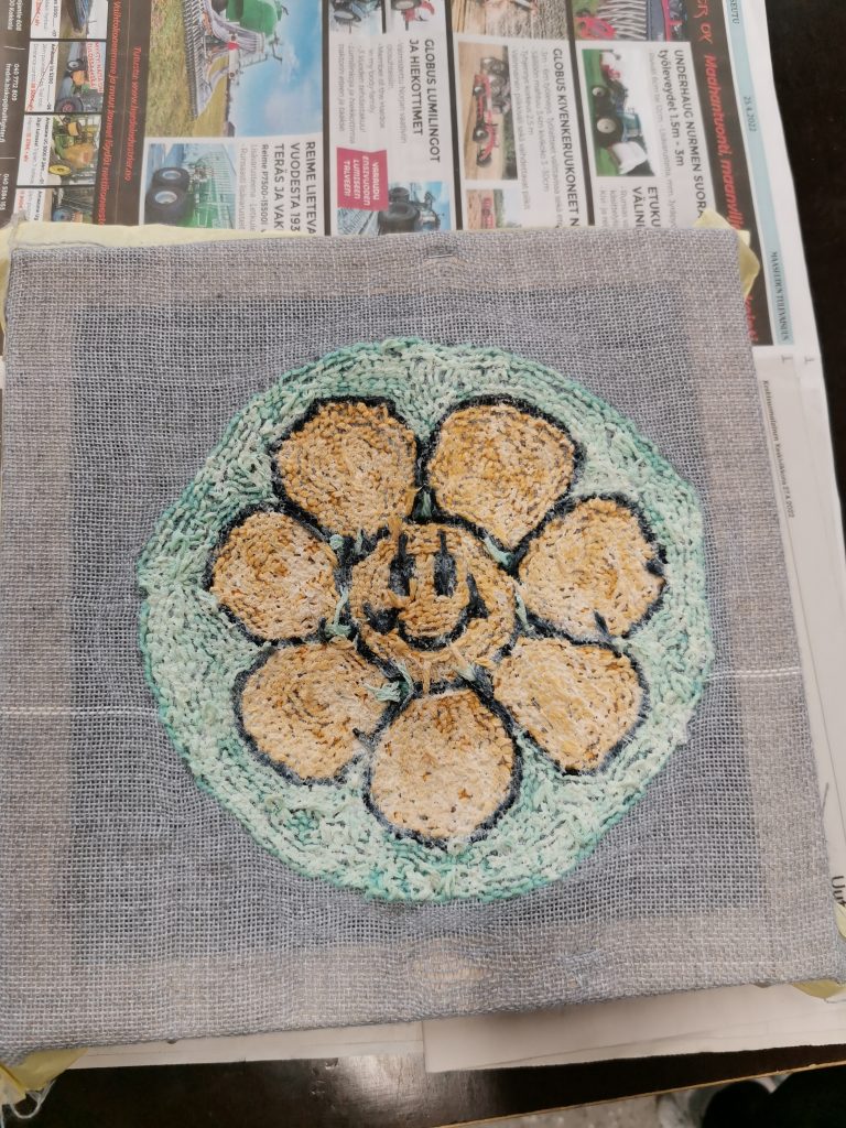 Syksyn opintomme alkoivat lyhyillä tekniikkatyöpajoilla, joissa pääsimme kokeilemaan kuvansiirtoa, kovettamista, laminointia, punontaa, ryijyn tekemistä, virkkausta, tuftausta ja kasvivärjäystä. Itseltäni kasvivärjäys meni ohi, koska sairastuin, mutta päätin kokeilla sitä omatoimisesti kotona. Siitä lisää seuraavassa postauksessa.