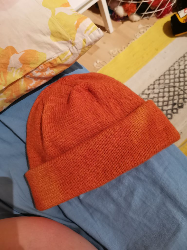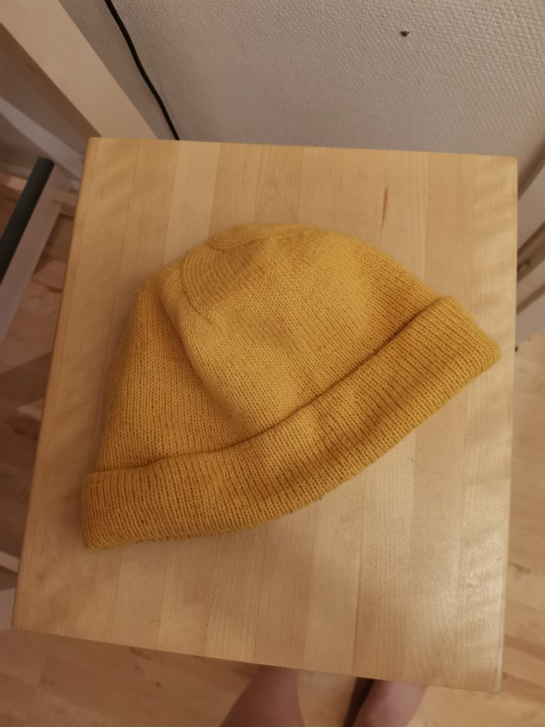 Tämän pipon olen tehnyt 2019 syksyllä ja keltainen väri alkoi kulahtaa joten värjäsin pipon Dylonin kotiväreillä.