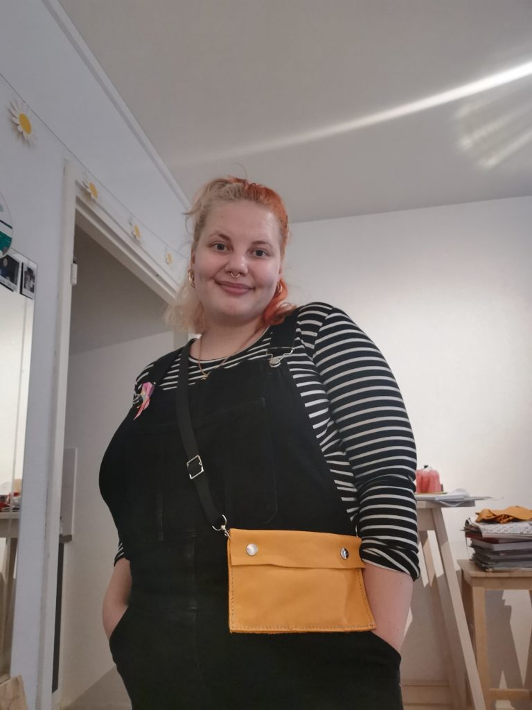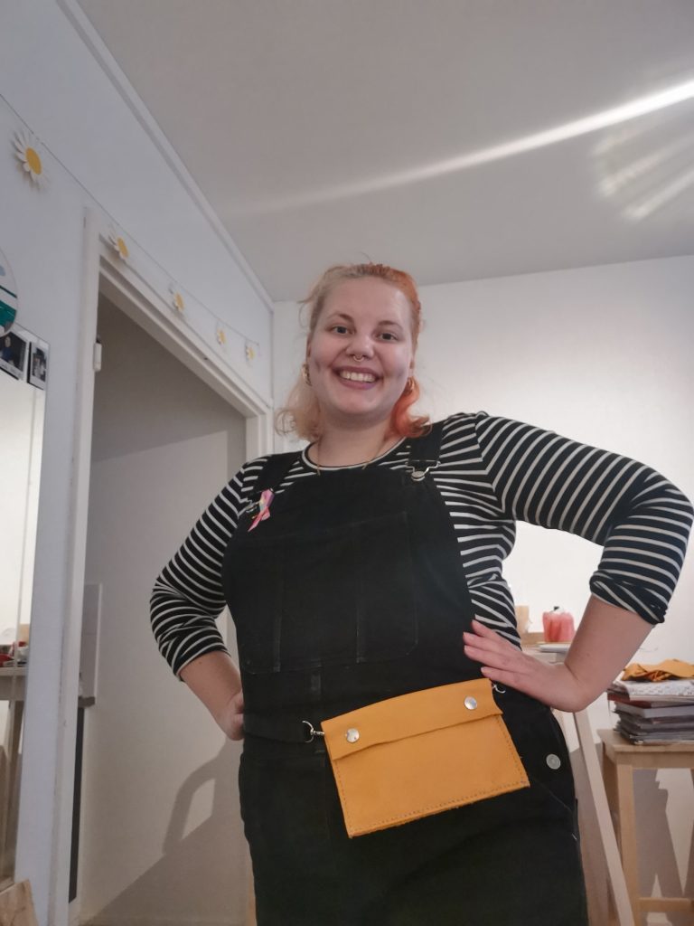 Hihnaa tehdessä tajusin, että laukkua voi myös pitää vyötäröllä vyölaukkuna.