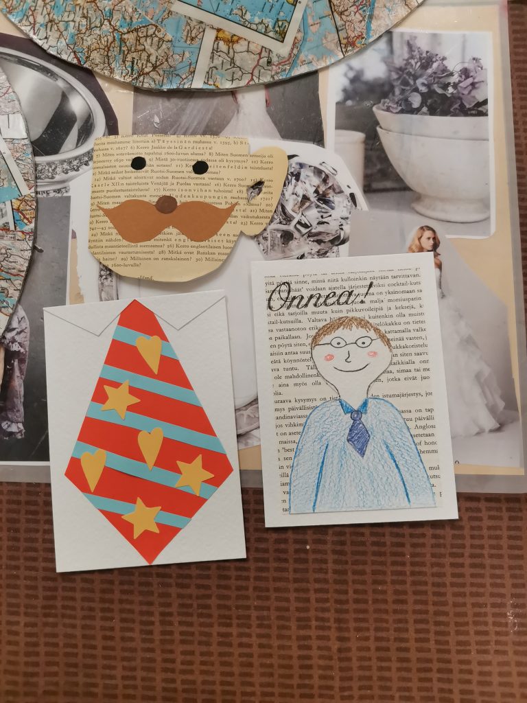 Erilaisia isänpäiväkortteja, joita suunnittelin. Onnea!-tekstin kortista saivat Kortetuvan asiakkaat tehdä omat versiot omille perheilleen.