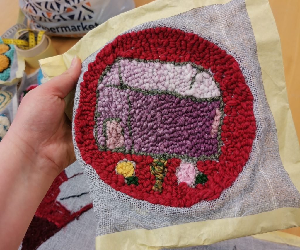 Tuftauksessa tarkoituksena oli että jokainen pääsee kokeilemaan tuftausta oman mielenkiintonsa mukaan. Harjoiteltiin tuftausta tekniikkana ja asiakkaat pääsivät suunnittelemaan omat teoksensa. Tuftaus sai suuren suosion ja se olikin kaikille uusi tekniikka.