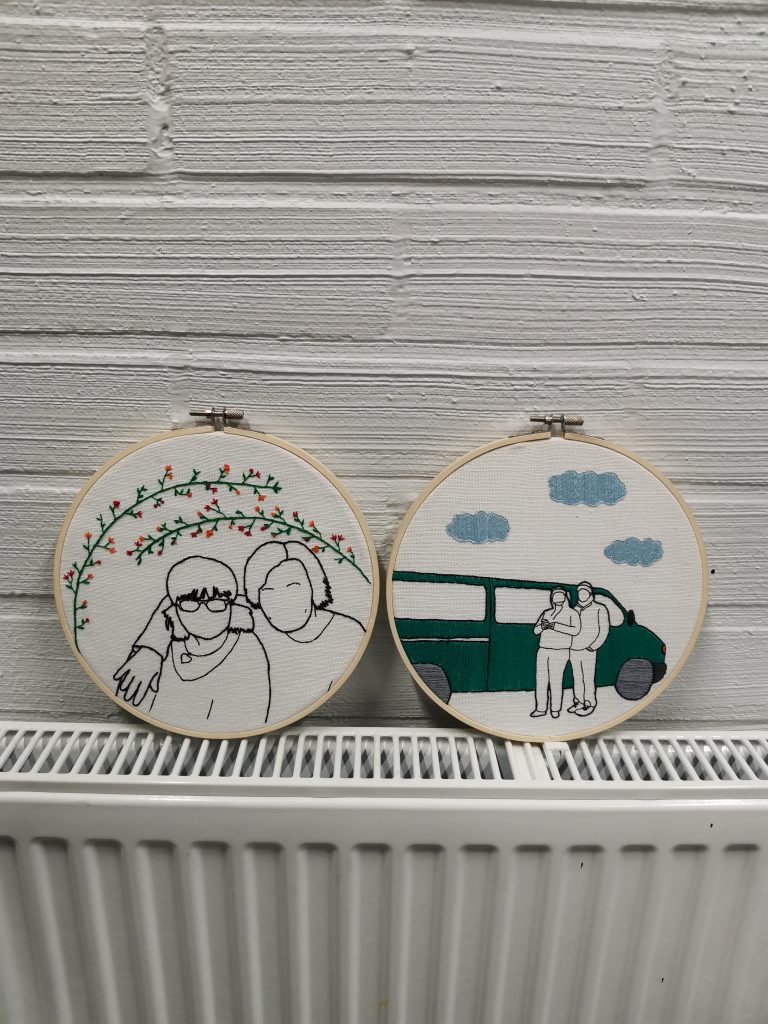 Kirjottuihin tauluihin sain inspiraatiota pinterestin suuresta maailmasta, sekä kukkaapukkaa – Instagram tililtä. Halusin saada tauluihin kirjonnan lisäksi myös toisenlaista näkökulmaa, joten päätin painaa tauluihin kuvien ääriviivat.