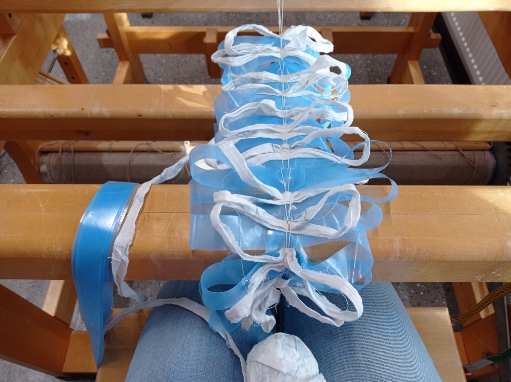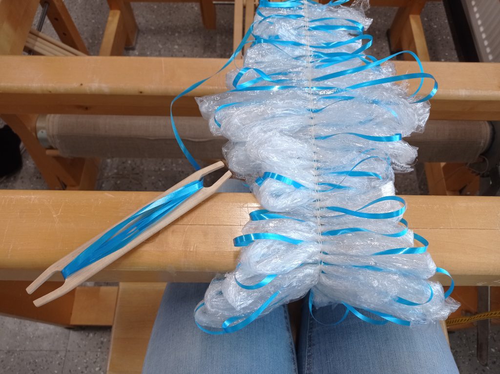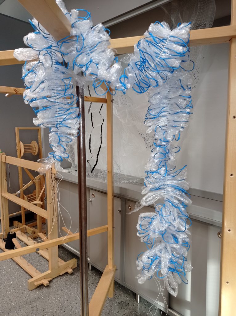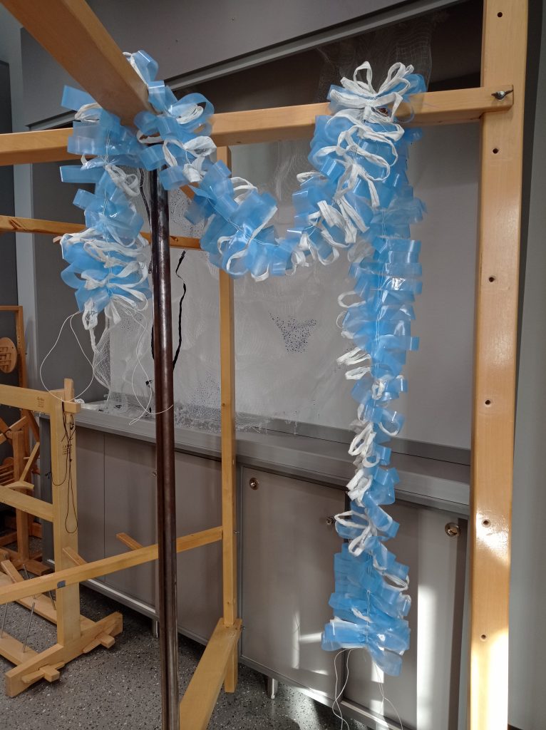 Luokkatoverini Eeva halusi kuvata kutomaansa huivia mutta ei itse halunnut mennä kameran eteen joten minä suostuin malliksi. Kuvista tuli oikein onnistuneita.