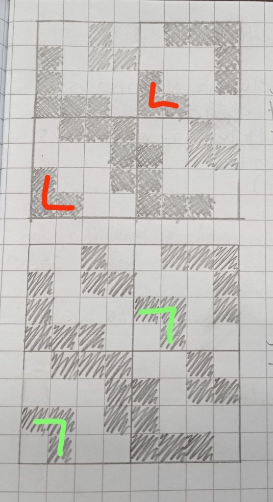Piirroksessa oli muutama virhe. Olin värittänyt muutaman ruudun väärinpäin minkä takia kuvio ei toiminut.