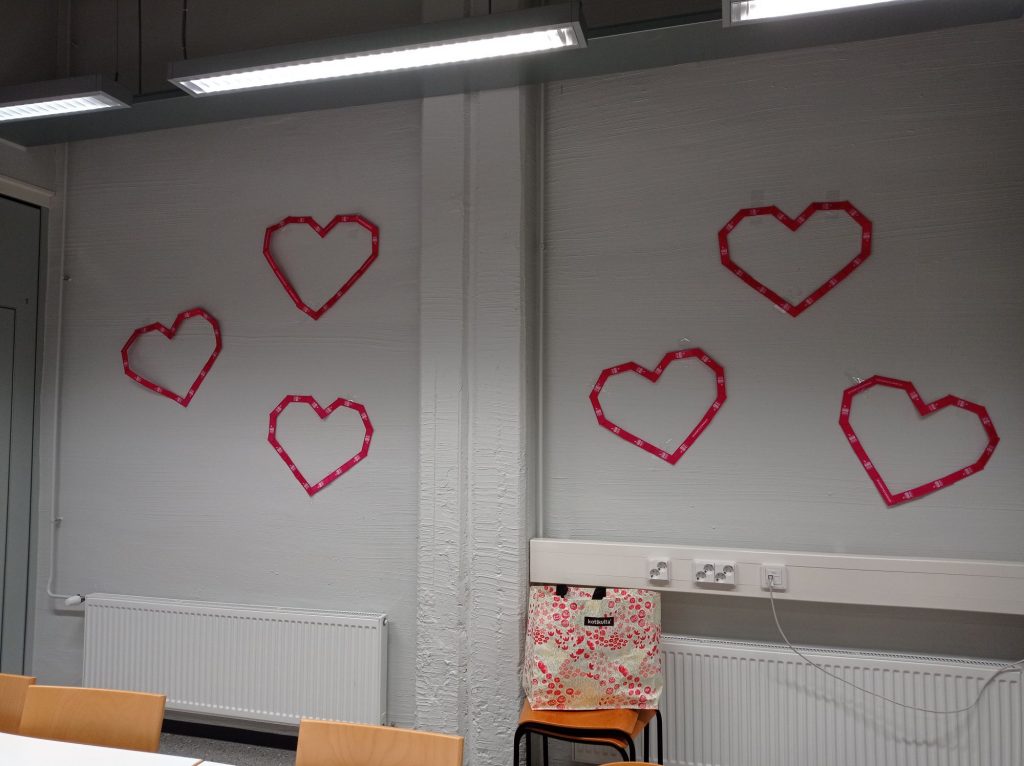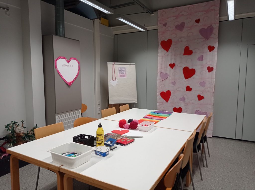 Järjestimme Eevan kanssa Ystävänpäivä-tapahtuman. Päivän ohjelmassa oli Halipassi-paja asiakaspalvelutilassa klo 9-10:45. Paja oli odotettua suositumpi ja venytimme sen aikataulua niin, että kestikin niin kauan kuin halukkaita oli. Tarjoilimme kaakaota alakerran aulassa, oli kiva huomata kuinka ihmiset tulivat siitä hyvälle mielelle. Valokuvaus puolen tutoreiden oli tarkoitus järjestää Kaverikuvaus. Siinä oli aluksi jotain ongelmia, mutta lopuksi kuvaus onnistui hyvin. Päivän teemana oli myös pukeutua punaiseen/vaaleanpunaiseen.