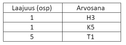 Vastaus: Arvosanojen painotettu keskiarvo on T2.